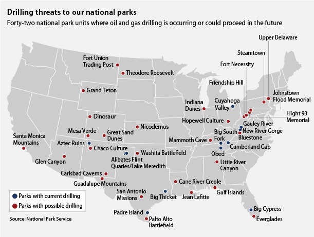 42 National Parks in the USA have oil or gas drilling taking place or planned within their boundaries